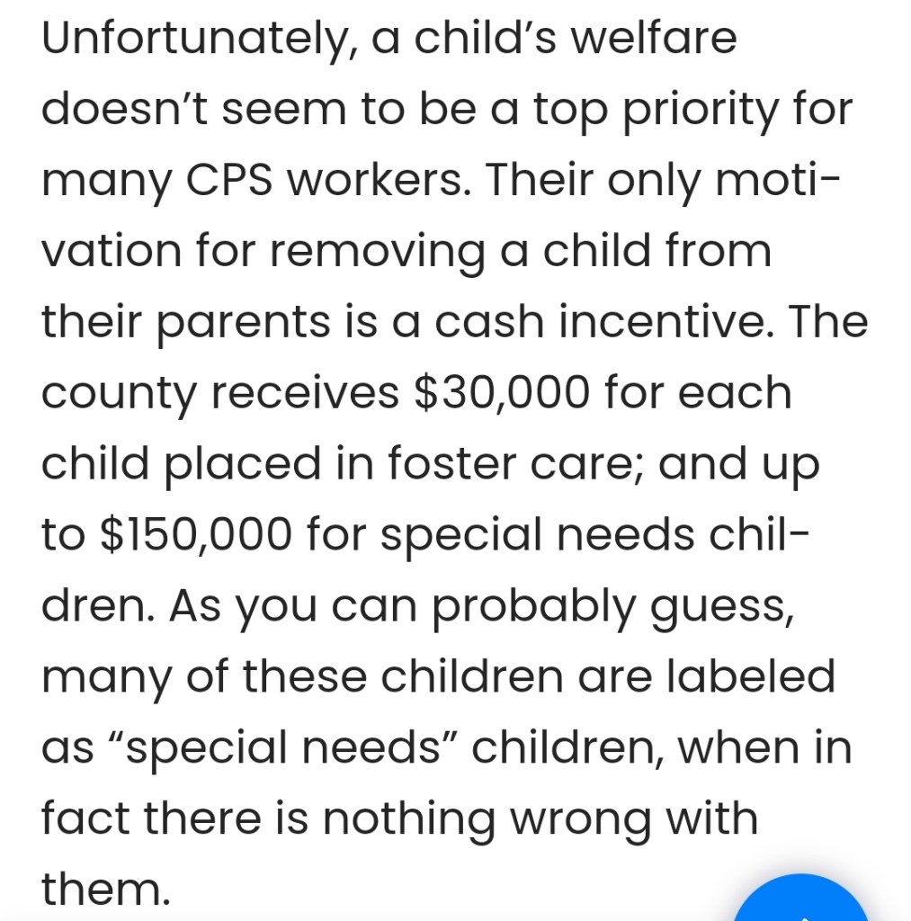 Money does not make people better parents. Children should be with their own loving Family & Gov etc should ONLY HELP Families NOT SEPARATE them.